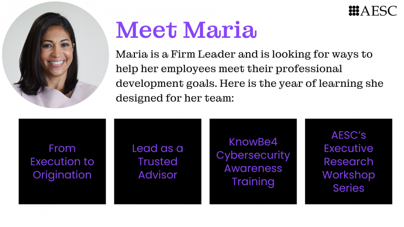 “AESC’s professional development is always keeping us in the know with the latest happening in our business, either incorporating leadership services, how search is evolving, the challenges we’re all facing.”
