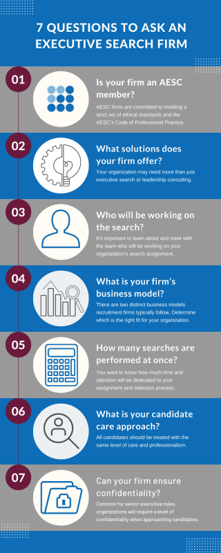 When choosing the right search firm for your organization’s executive-level assignments, consider the following 17 questions to determine if the firm is the right fit for your organization and assignment: