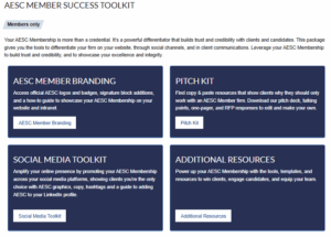 Every AESC Member should have the resources to showcase their competitive advantage to clients, so we created the AESC Member Success Toolkit. This ready-to-use package helps Members amplify their Membership across every channel. With official AESC logos and branding assets, customizable pitch decks and RFP copy, a complete social media kit, and FAQs on the vetting process, this toolkit equips you to showcase your firm's integrity, trust, and excellence.