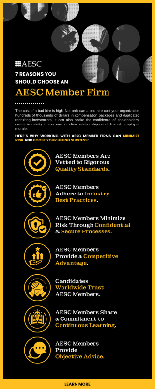 Here’s why working with AESC member firms can minimize risk and boost your hiring success: